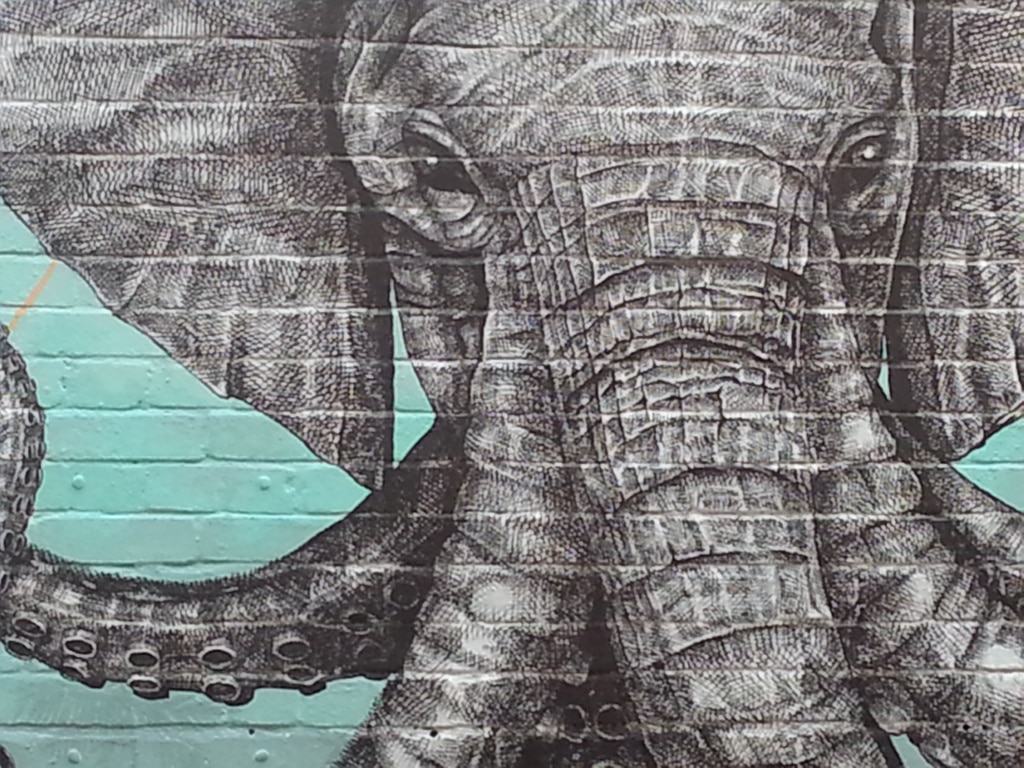 After the church, Doug walked us down to another popular graffiti / street art spot. Here happened to be some of the Largest scale, most inventive street art pieces I’ve ever witnessed in person. There was this elephant. The whole piece was done by drawing individual lines. Being right next to it, they were just lines on a wall. Stand back and there’s this elephant. It was awesome. We turn and there is this huge crane (the bird) painted on a 5 or 6 story building. Seriously, I don’t even know where to begin when painting a 5 story building. Someone did though. There was this once piece that was done by scratching out the art work in a window covered in dust. Yeah, think of it like when you write “WASH ME” on a dirty car. That’s basically what it was like. The last piece he showed us was another like the elephant. It is this boy yelling, or saying something. When you walk up to it, it’s all words and sayings painted in such a way that it makes a figure. It was really awesome. Here’s a gallery of the art I just described.
