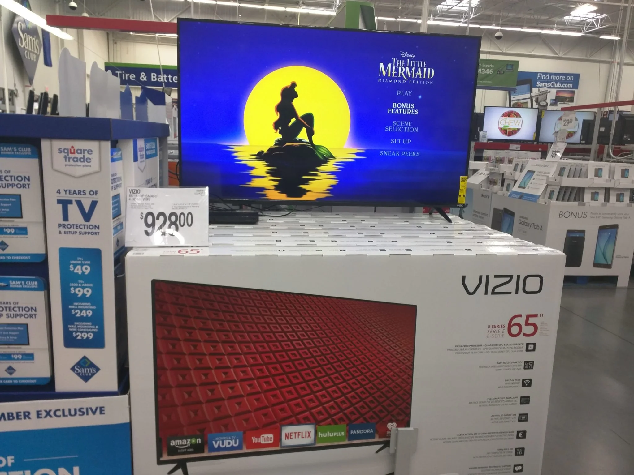 After you decide on which flat screen you want, and which size it should be, the next thing to do is find out who has it for the lowest cost. Keep in mind that very low prices usually mean that the flat screen is refurbished. Fry’s Electronics usually has 65 inch Vizio flat screen tv’s for sale. In their ad, the sale reads as “refurbished by 3rd party vendor”. Buyer beware. The other thing you want to verify is the model number on the TV you’re looking at. Some stores like to put the top model on display and pass it off as the cheaper, lower model. There was a popular electronics store with a price tag as a logo that liked to do that many years ago. After few hours of research, it turns out that Costco has the best deal on 65 inch Vizio flat screen televisions. Costco extends ther manufacturer warranty on computers and televisions for 2 years from the date of purchase. I have a 5 year warranty on my 65 inch Vizio and I paid $60 – $80. They also come to your house if there is a problem with the device. Walmart makes you bring it in to the store. Just as a comparison.
